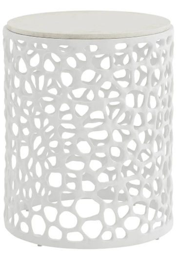 The Coral Side Table elevates everyday living with its artfully cast white aluminum base and sophisticated quartz top. Inspired by the organic rhythm of coral formations, this end table is the perfect companion to your favorite lounge chair or sofa. Compact yet striking, it brings a sense of coastal serenity to any space.